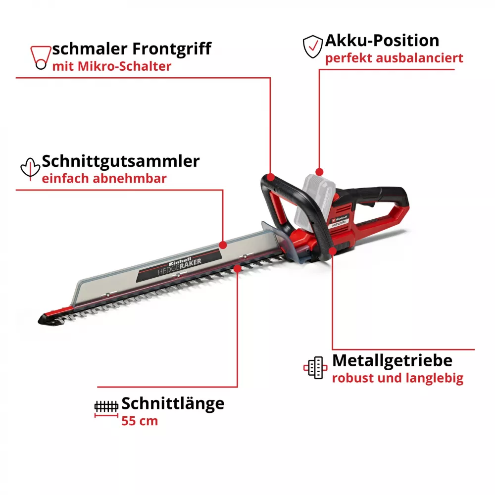- Довжина різання 550 мм - забезпечує ефективне підстригання широких живоплотів
