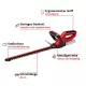 Акумуляторні ножиці для живоплоту Einhell GC-CH 1846 Li-Solo оснащені дворучним запобіжним вимикачем: пристрій автоматично зупиняється, якщо руки не знаходяться на руків'ї ножиць. Ергономічна ручка гарантує точну та безпечну роботу як у горизонтальному, так і у вертикальному положенні. У комплекті постачається міцний чохол, який забезпечує безпечне зберігання та транспортування.