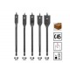 - 5 плоских свердел для дерева з міцної інструментальної сталі (C45) з високою міцністю, з хвостовиком E 6.3