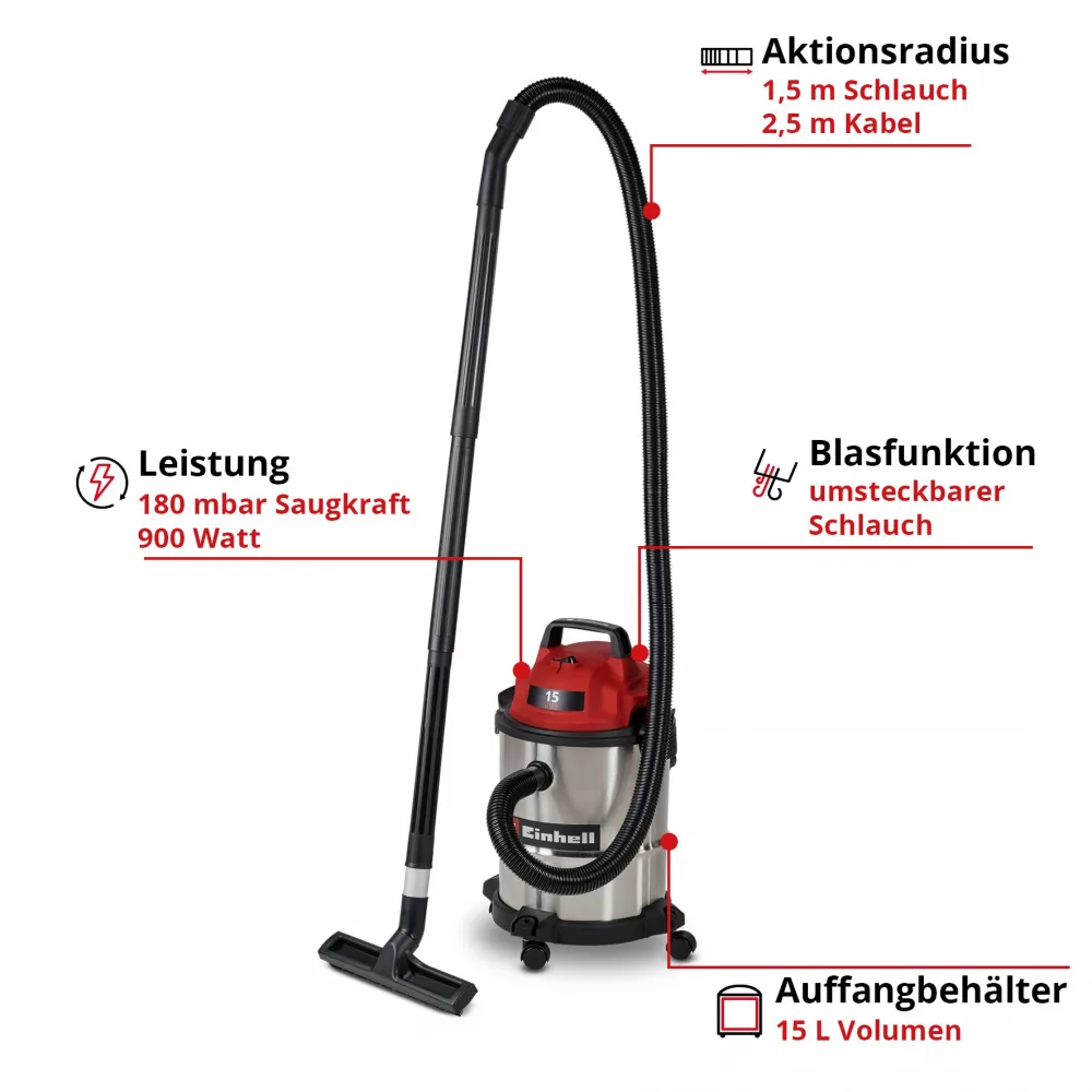 Опис Пилосос для вологого та сухого прибирання Einhell TC-VC 1540 S
