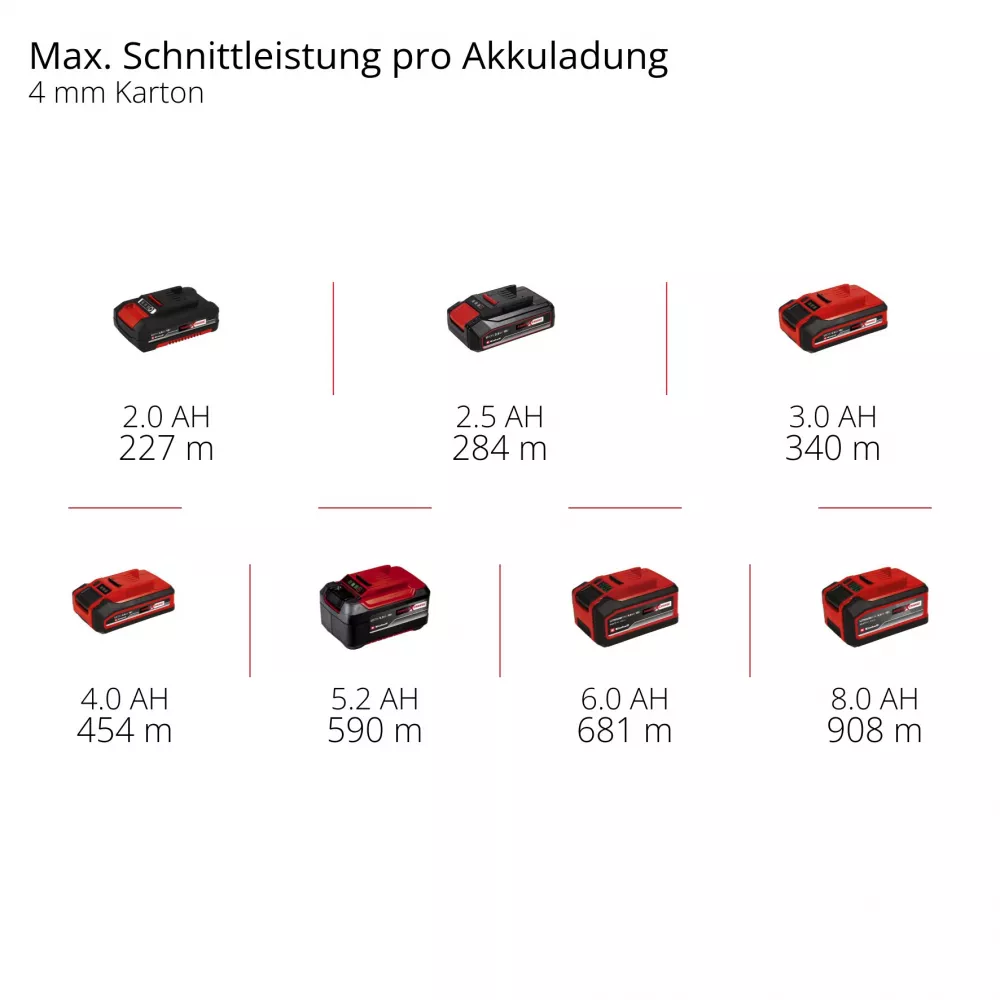 Примітка: Інструмент сумісний з усіма акумуляторами Einhell Power X-Change (рекомендовано 2.0 Ah або 2.5 Ah для збереження легкості).