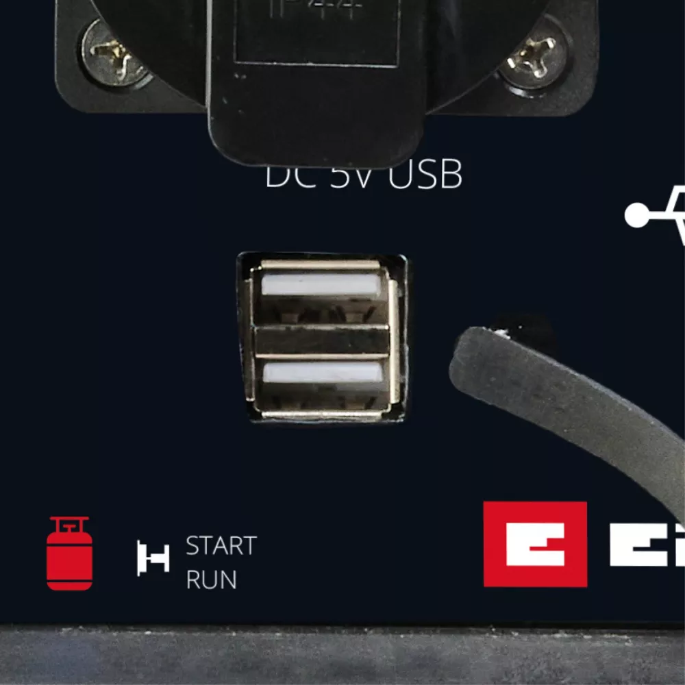 Генератор Einhell TE-IG 1900 DF може працювати на бензині та газі (пропан, зріджений нафтовий газ). При роботі на бензині він виробляє до 1800 Вт постійної потужності та 1900 Вт пікової потужності. При роботі на газі він забезпечує максимум 1600 Вт постійної потужності та 1700 Вт пікової потужності.