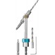 Тримач наконечників із замком, що швидко замикається, 6 частин. Комплект складається з двох високоякісних 50 мм. S2 сталі біти розміру PZ 2 і T 20, промислової якості, 1/4" шестигранним хвостовиком ISO 1173, E 6.3, і два свердла з швидкорізальної сталі з діаметром 4 мм і 5 мм з 1/4" шестигранним хвостовиком, для попереднього свердління рейок та брусків на глибину до 40 мм.