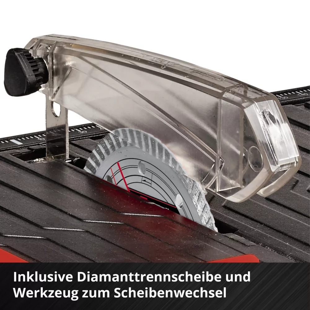 Плиткорізний верстат Einhell TE-TC 18/115 Li-Solo ідеально підходить для мобільної роботи завдяки своїм невеликим габаритам. Плиткоріз Einhell TE-TC 18/115 Li-Solo може використовуватися для точного різання малої та середньої керамічної плитки всіх видів товщиною до 24 мм (16 мм при 45 °). Для точного наведення при різанні є паралельний і кутовий упор, кутовий обмежувач має налаштування від -45 до +45 для косих різів, а також лінійку на робочому столі. Робочий стіл може бути встановлений під кутом від 0 до 45 для похилого різання. Наявність вбудованого контейнера для води гарантує чудове охолодження алмазного ріжучого диска під час роботи. Для зручності транспортування є вбудована ручка. Інструмент поставляється без акумулятора та зарядного пристрою, але може бути приведений у дію за допомогою Power X-Change акумулятора.
