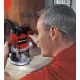 TE-RO 1255 E фрезер - це високоякісний, потужний інструмент для фахівців для вирішення найскладніших завдань фрезерування в деревині, фанері та ДСП. Глибини фрезерування легко вибрати за допомогою ступінчастої зупинки револьверного типу, а також можуть бути точно відрегульовані завдяки двутрубному обмежувачу с точністю до 0.1 мм. Захист від перевантаження забезпечує додаткову безпеку під час роботи. За допомогою електронного управління швидкістю робота фрезера може бути адаптована з оптимальним ефектом до конкретних потреб матеріалу і ріжучого інструменту, що використовується. Для швидкої і легкої зміни інструменту є блокування шпинделя, в той час як добре збалансована конструкція надає хорошу стійкість інструменту. Цанги дозволяють використовувати фрези з діаметром вала 6 мм або 8 мм. Пластикова вставка на нозі захищає поверхню заготовки. М'які ергономічні ручки фрезера забезпечують надійне тримання інструменту для комфортної та безпечної роботи. Видалення пилу через адаптер гарантує, що область фрезерування залишається в чистоті і порядку. Широкий асортимент аксесуарів для TE-RO 1255 E включає в себе паралельний упор, циркульну голку, копіювальне кільце і інструмент для зміни різця. Кабельний затискач для кріплення кабелю дозволяє зберігати фрезер акуратно і безпечно.