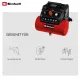 Мощный двигатель работает с впечатляющей мощностью 1,2 кВт и частотой вращения 18 000 об/мин. Это делает компрессор пригодным для широкого спектра применений в доме и саду.