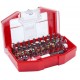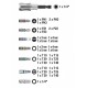 Сменные биты в коробке, 32 предмета, биты: привод 1/4“ шестигранный по стандарту ISO 1173, C 6.3, промышленное качество, с цветными маркировочными кольцами, для различения формы головки, быстросменный держатель насадок с приводом 1/4“ шестигранным по стандарту ISO 1173, E 6.3, коробка с зажимом для ношения на ремне.