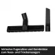 Универсальная комбинированная насадка с колёсиками идеально подходит для уборки ковров и гладких полов. Щелевая насадка позволяет легко добраться до узких и труднодоступных мест. Насадки можно хранить в практичной сумке для хранения. В комплект также входят гофрированный фильтр, пылесборник для сухой уборки и поролоновый фильтр для сбора жидкостей.
