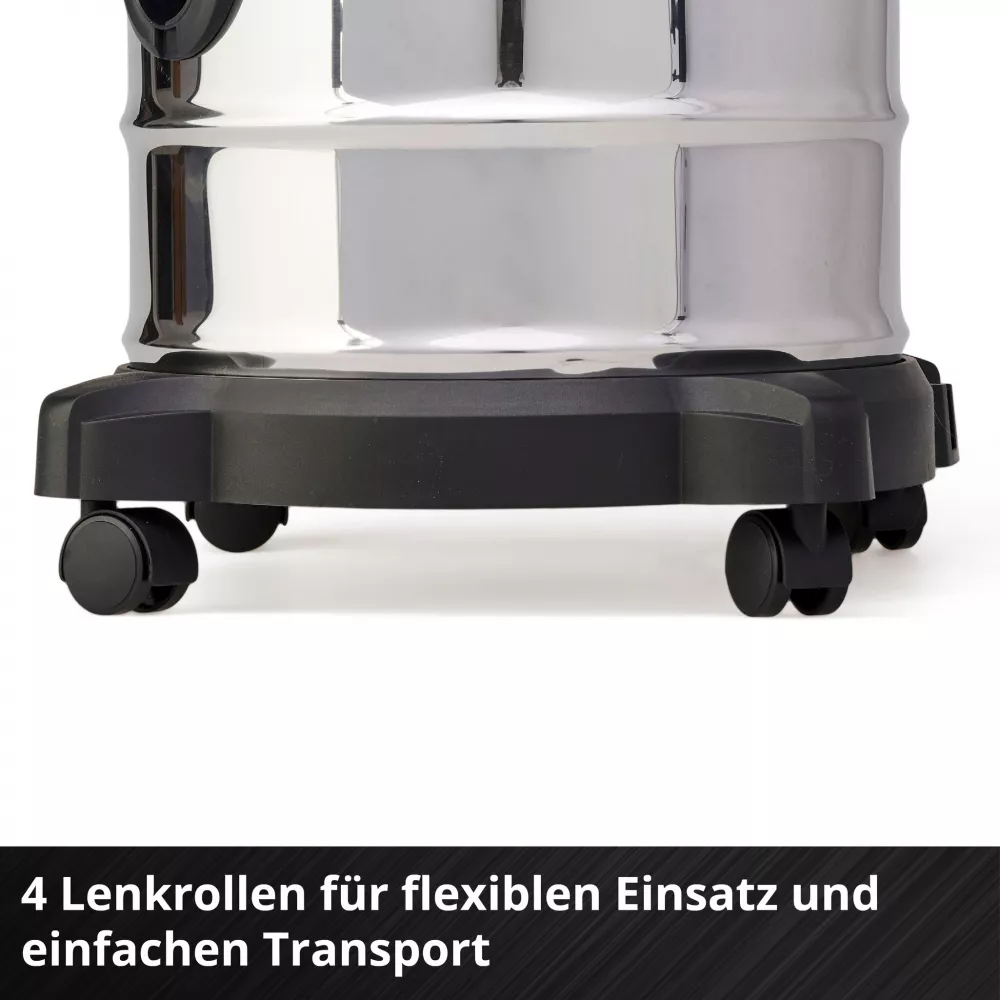 Аккумуляторный пылесос для золы Einhell TE-AV 18/15 Li C-Solo обеспечивает легкую и аккуратную очистку от золы мангалов, печей и каминов. Максимальная мощность всасывания составляет 100 мбар. Этот пылесос работает от одного аккумулятора 18 В и является устройством семейства Einhell Power X-Change. Контейнер объемом 15 л рассчитан на длительную работу. Оснащен армированным металлом шлангом (36 мм – длиной 1,2 м) и алюминиевой всасывающей трубкой. Только чистая печь хорошо впитывает воздух – при этом золу нужно удалять не только из золосборника, но и из труднодоступных углов и промежутков между ними. Система очистки фильтра обеспечивает восстановление полной мощности всасывания 100 мбар, не оставляя никакого шанса для мелкой или зольной пыли благодаря гофрированной системе фильтров. Функцию выдувания можно использовать, просто подключив шланг к воздушному отверстию. Пылесос для золы имеет прочную конструкцию благодаря укрепленному металлом всасывающему шлангу и алюминиевой трубке. Большой сборный контейнер объемом 15 литров позволяет работать дольше и легко опорожняется благодаря быстросъемным креплениям. Аккумуляторный пылесос для золы имеет четыре ролика для гибкости и мобильности. Практическая ручка для транспортировки обеспечивает легкую транспортировку, а всасывающий шланг можно закрепить на пылесосе для экономии места. Этот продукт поставляется без отдельного аккумулятора и зарядного устройства.